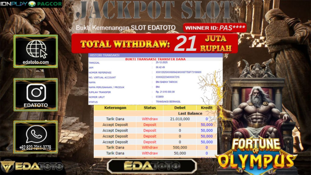 Selamat kepada member setia EDATOTO telah mendapatkan JP Bermain Di : Fortune Of Olympus